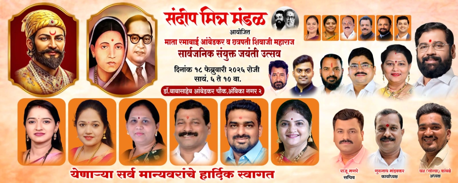 स्थापना २०२४ असलेल्या संदीप मित्र मंडळ यांच्या वतीने दि. १८ फेब्रुवारी २०२६ रोजी सायंकाळी ६ ते १० या वेळेत माता रमाबाई आंबेडकर व छत्रपती शिवाजी महाराज यांची सार्वजनिक संयुक्त जयंती मोठ्या उत्साहात साजरी करण्यात येणार आहे. हा कार्यक्रम अंबिका नगर नं. २ येथील डॉ. बाबासाहेब आंबेडकर चौक, वागळे इस्टेट रोड क्र. १६, ठाणे (प.) येथे आयोजित करण्यात आला आहे.