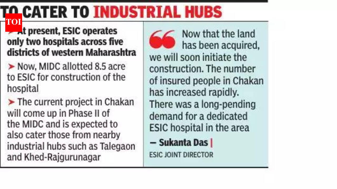 पुणे: महाराष्ट्र औद्योगिक विकास महामंडळ (MIDC) ने या महिन्याच्या सुरुवातीला सुविधेसाठी 8.5 एकर जागा दिल्यावर चाकण औद्योगिक पट्ट्याला पहिले कर्मचारी राज्य विमा महामंडळ (ESIC) संचालित 350 खाटांचे रुग्णालय मिळणार आहे.ESIC सहसंचालक सुकांता दास यांनी TOI ला सांगितले की ESIC योजनेंतर्गत समाविष्ट कर्मचाऱ्यांसाठी प्रत्येकी 100 खाटांची रुग्णालये उभारण्यासाठी महामंडळाने बारामती आणि सातारा येथे जमीनही मिळवली आहे.“आता जमीन संपादित केली गेली आहे, आम्ही लवकरच बांधकाम सुरू करू. चाकणमध्ये विमाधारकांची संख्या झपाट्याने वाढली आहे. या भागात समर्पित ईएसआयसी रुग्णालयाची दीर्घकाळापासून प्रलंबित मागणी होती,” दास म्हणाले.सध्या, ESIC पश्चिम महाराष्ट्रातील पाच जिल्ह्यांमध्ये फक्त दोन रुग्णालये चालवते – पुण्यातील बिबवेवाडी आणि कोल्हापुरात प्रत्येकी एक. याशिवाय, चिंचवडमधील मोहननगर आणि सोलापूरमध्ये आणखी एक ESIC रुग्णालये राज्य सरकारद्वारे चालवली जातात. तथापि, या रुग्णालयांमध्ये आगाऊ उपचारांचा अभाव आहे आणि रुग्णांना बऱ्याचदा ईएसआयसी किंवा सरकारी रुग्णालयांसह एकतर खाजगी रुग्णालये निवडण्यास भाग पाडले जाते.चाकणमधील सध्याचा प्रकल्प एमआयडीसीच्या फेज II मध्ये येणार आहे आणि तळेगाव आणि खेड-राजगुरुनगर यांसारख्या जवळच्या औद्योगिक केंद्रांमधील प्रकल्पांनाही ते पूर्ण करेल अशी अपेक्षा आहे.दास पुढे म्हणाले की, सध्या 140 खाटांची क्षमता असलेले सध्याचे बिबवेवाडी ईएसआयसी रुग्णालय देखील अपग्रेड केले जात आहे. “अपग्रेड केलेल्या सुविधेत लवकरच 500 खाटांची क्षमता असेल,” ते म्हणाले.फेडरेशन ऑफ चाकण इंडस्ट्रीजच्या सदस्यांनी सांगितले की, एकट्या चाकण एमआयडीसीमध्ये सात लाखांहून अधिक औद्योगिक कामगार नोंदणीकृत आहेत आणि त्यांना नवीन सुविधेचा फायदा होण्याची शक्यता आहे. “आम्ही अनेक वर्षांपासून या रुग्णालयाची मागणी केली होती. या प्रकल्पाला केंद्रीय कामगार मंत्र्यांनी 2022 मध्ये मंजुरी दिली असली तरी जमिनीशी संबंधित समस्यांमुळे याला विलंब झाला,” असे चाकण इंडस्ट्रीज फेडरेशनचे सीईओ दिलीप बटवाल यांनी सांगितले.बटवाल म्हणाले की, औद्योगिक पट्ट्यात सध्या केवळ ईएसआयसीद्वारे चालवल्या जाणाऱ्या ओपीडी सुविधा आहे, परंतु पुढील उपचारांसाठी कोणतेही रुग्णालय नाही. विमा उतरवलेले कामगार ESIC अंतर्गत सूचीबद्ध सरकारी रुग्णालये किंवा खाजगी रुग्णालयांवर अवलंबून असतात, त्यापैकी बरेच औद्योगिक पट्ट्यापासून दूर आहेत. “अनेकदा त्यांना उपचारासाठी आगाऊ पैसे द्यावे लागतात आणि ते परतफेडीची मागणी करतात, परंतु ते त्यांच्यासाठी अन्यायकारक होते कारण त्यांना उपचाराचा उच्च खर्च परवडत नाही,” तो म्हणाला.ESIC योजनेंतर्गत, कर्मचाऱ्यां
