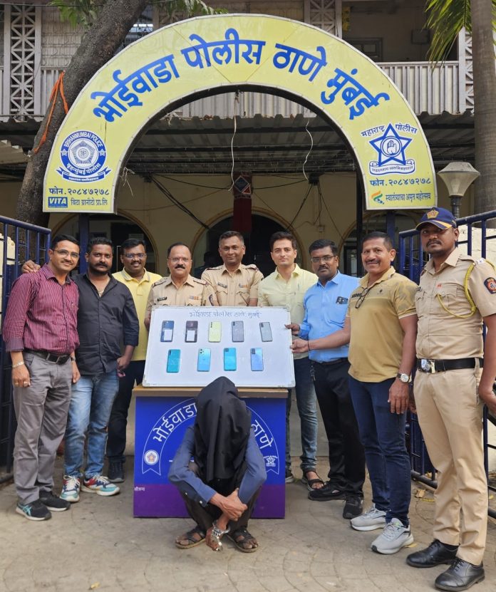 रात्रीच्या शांततेचा फायदा घेत सार्वजनिक ठिकाणी मोबाईल चोरी करणाऱ्या सराईत आरोपीचा भोईवाडा पोलीसांनी पर्दाफाश केला आहे. परिमंडळ ४ च्या पथकाने केलेल्या कारवाईत आरोपीला अटक करण्यात आली असून त्याच्याकडून एकूण ९ मोबाईल फोन जप्त करण्यात आले. जप्त मुद्देमालाची किंमत सुमारे १ लाख रुपये असल्याचे पोलिसांनी सांगितले.